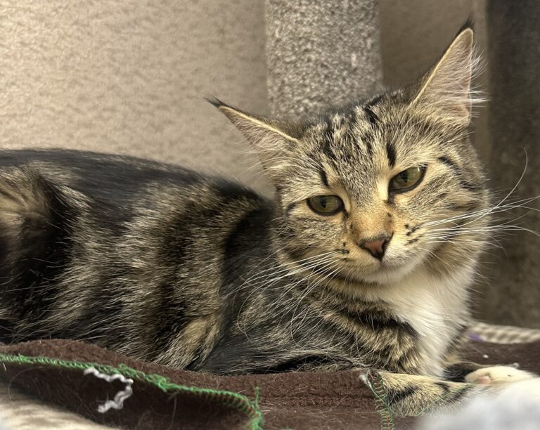Hi! I’m Bessie, the curious and cuddly cat at your local shelter. My days are filled with exploring every nook and cranny and greeting everyone with purrs. I love snuggling up for a good nap or playing with my favorite toys. I’m friendly and sweet, always ready for a gentle pat or a playful game. If you’re looking for a loving companion to share cozy moments and fun adventures, I’m your girl! Adopt me and let’s start our story together.