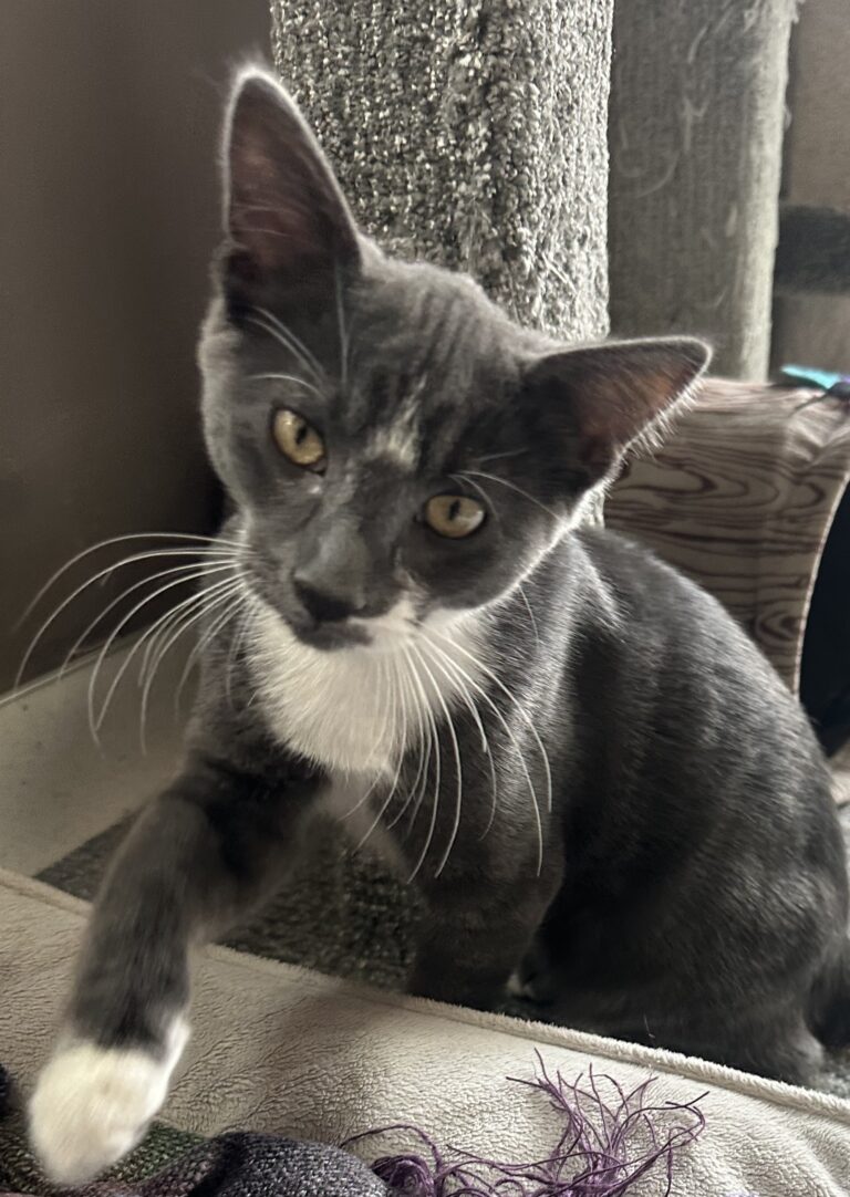 Hi! I’m Gilroy, the kitten with a knack for fun! My days are packed with playful adventures and cuddles. I love making friends, and I’m always ready for a goofy game or a cozy lap nap. If you’re looking for a cheerful companion to bring joy and laughter to your home, I’m your guy! Adopt me and let’s start our fun-filled journey together.